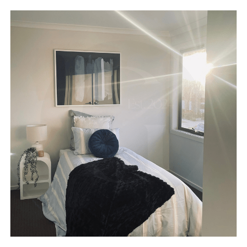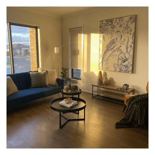 Our design direction focused on creating inviting, easy-flowing spaces that would connect emotionally with buyers. We softened the open-plan living and dining zones with layered neutrals, textured accents, and natural timbers to enhance light and flow. The kitchen was styled with understated luxury and lifestyle elements, while the upstairs retreat and bedrooms introduced a subtle mix of colour, warmth, and comfort to appeal to families and first-home buyers alike.